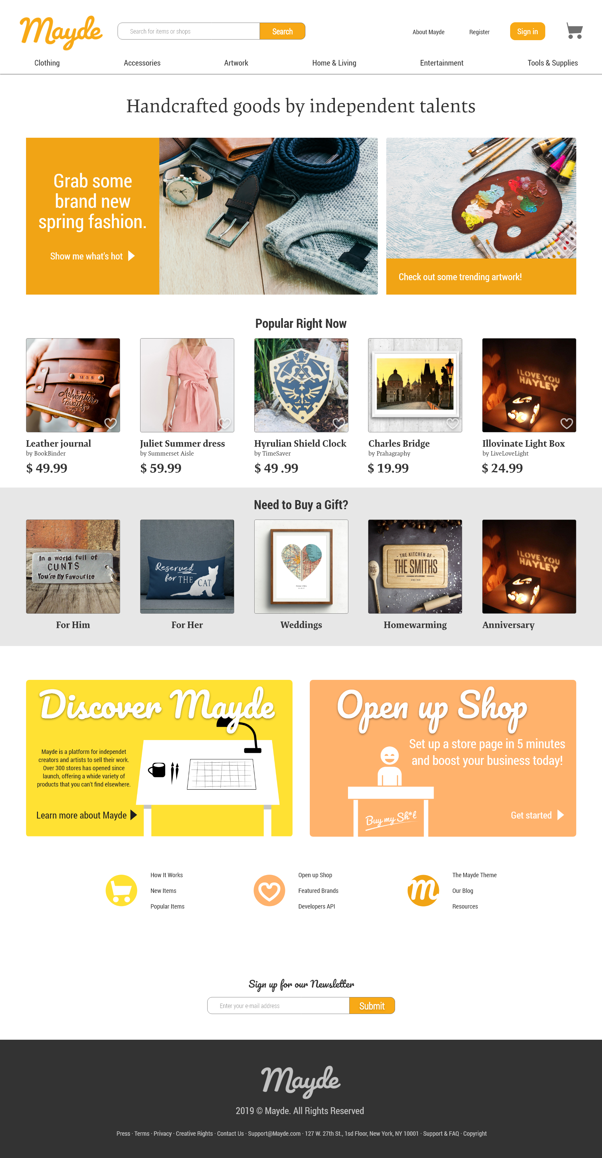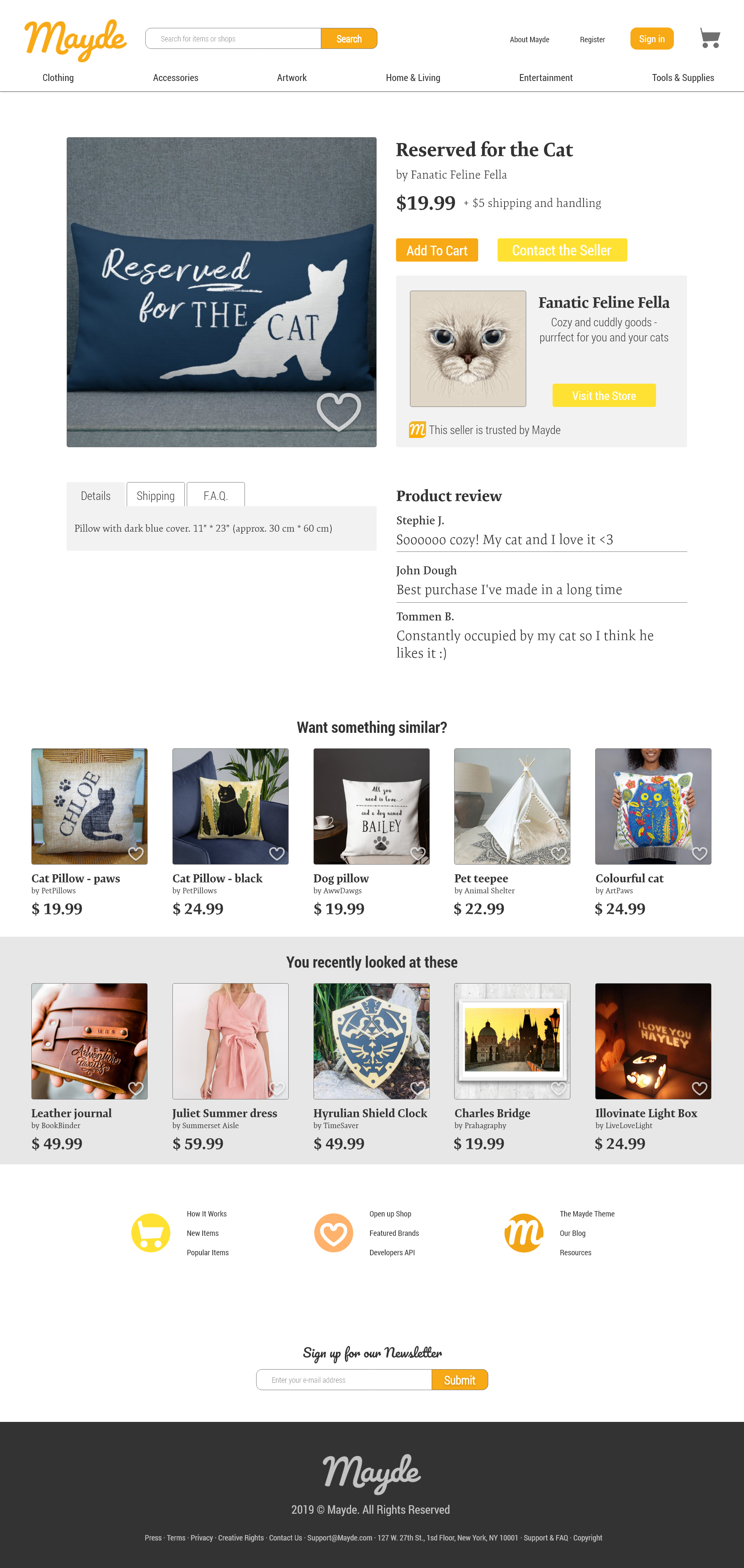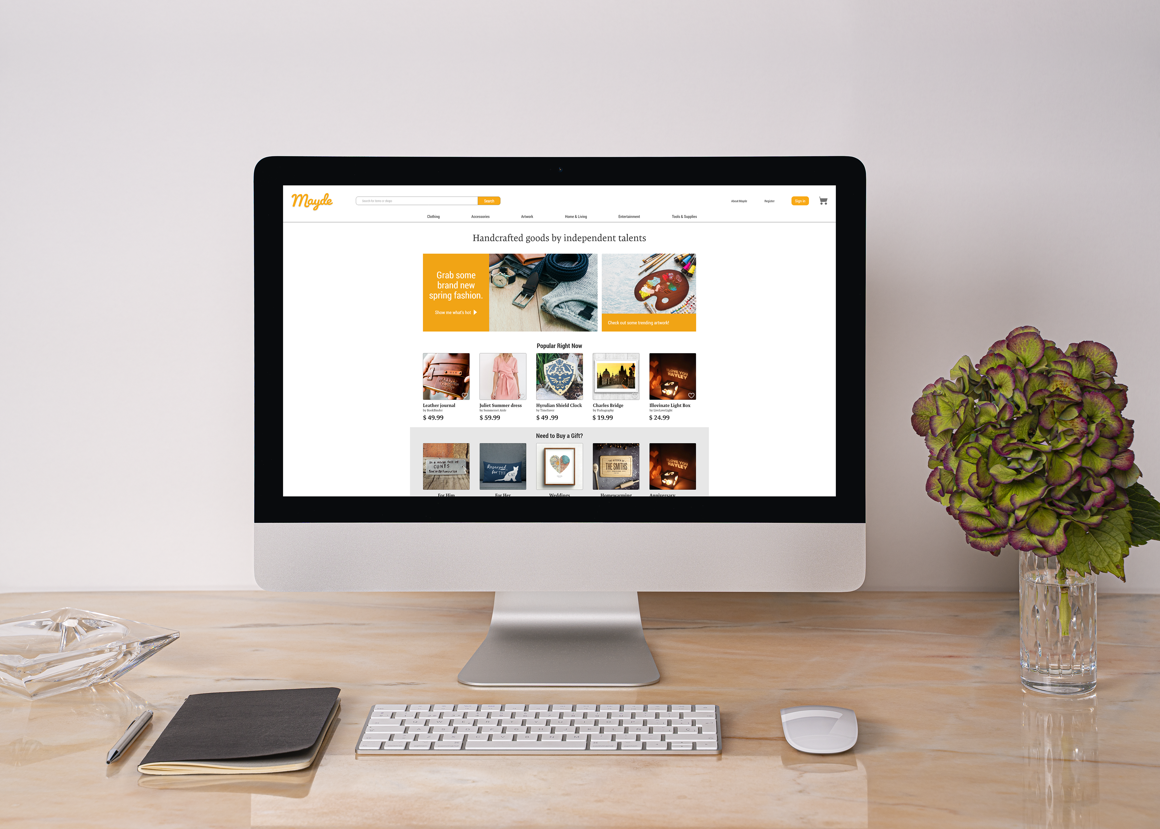 This is an e-commerce inspired by the likes of Etsy, where independent creators would be able to sell their own handcrafted products through a convenient and user-friendly platform. Design created in 2019.